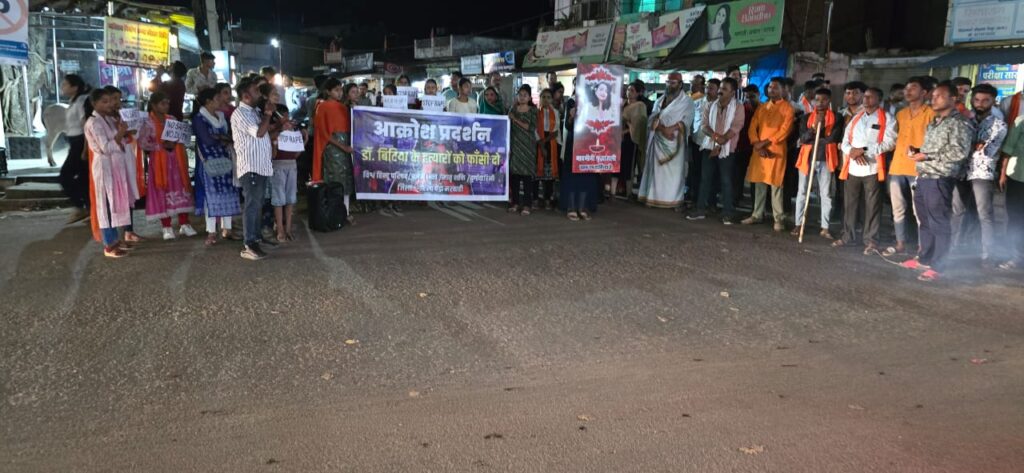 कलकत्ता में हुई डॉक्टर की हत्या और दुष्कर्म के विरोध में पेंड्रा में विश्व हिंदू परिषद, बजरंग दल, मातृशक्ति और दुर्गा वाहिनी के तत्वावधान में विरोध प्रदर्शन का आयोजन किया गया। इस दौरान दादा भयहरण हनुमान मंदिर से एक विशाल रैली निकाली गई, जिसमें “हत्यारों को फांसी दो”, “माता-बहनों का अपमान नहीं सहेगा हिंदुस्तान”, “मृत डॉक्टर को शीघ्र न्याय दिलाया जाए“ जैसे नारों के साथ दोषियों के खिलाफ सख्त कार्रवाई की मांग की गई।