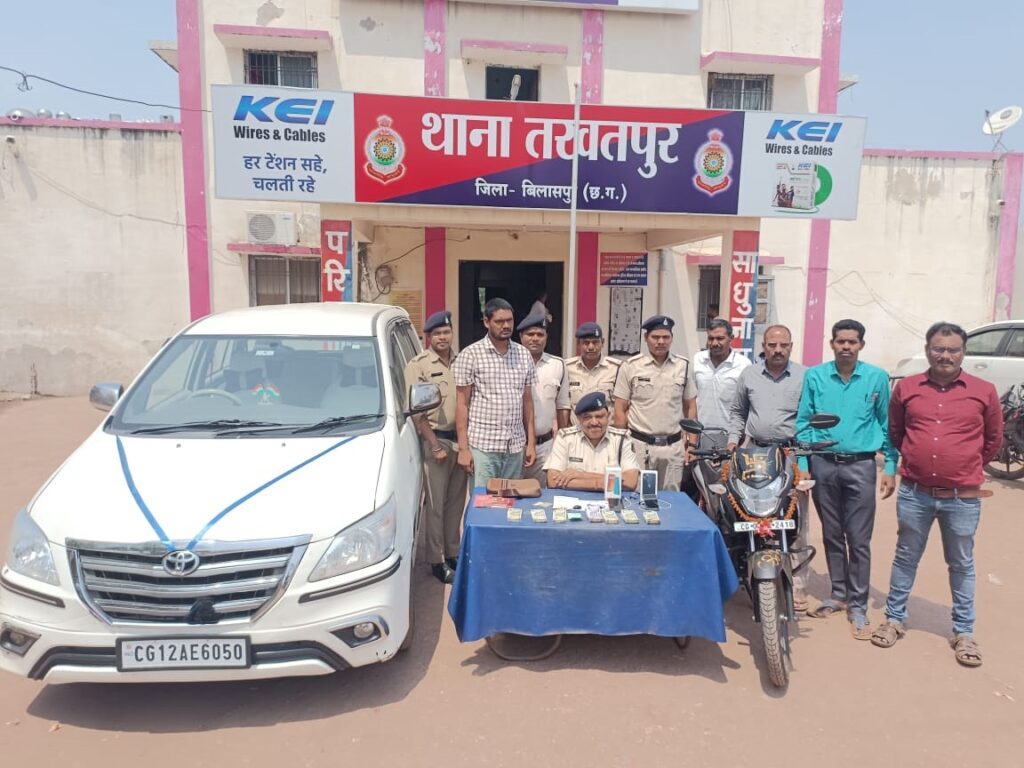तखतपुर स्थित राइस मिल से व्यवसायी की कार और 11 लाख रुपये लेकर फरार होने वाले ड्राइवर को पुलिस ने रायपुर से गिरफ्तार कर लिया है। उसके पास से पुलिस ने चोरी के पैसे से खरीदी हुई कार, एप्पल मोबाइल, बाइक और तीन लाख रुपये जब्त किये हैं। उसने शेष रकम को सट्टा खेलकर गंवा दिया है। ज्ञात हो कि नर्मदा नगर में रहने वाले कैलाशचंद्र अग्रवाल व्यवसायी हैं। तखतपुर क्षेत्र के खम्हरिया बाइपास के पास उनकी राइस मिल है। व्यवसायी छह मार्च को बैग में 11 लाख रुपये लेकर राइस मिल आए। इस दौरान रुपयों से भरा बैग कार में ही छूट गया। इधर कार का ड्राइवर वेदप्रकाश सिंह राजपूत निवासी तालापारा रुपये से भरा बैग और कार लेकर फरार हो गया। थोड़ी ही देर में व्यवसायी ने ड्राइवर को काल किया तो उसका मोबाइल बंद था। उन्होंने इसकी जानकारी तखतपुर पुलिस को दी। इस पर पुलिस ने कार ड्राइवर की तलाश शुरू कर दी। कुछ ही घंटे बाद पता चला कि कार कोटा रोड में लावारिस खड़ी है। इस पर पुलिस ने कार जब्त कर लिया। पुलिस आरोपी की तलाश कर रही थी। इस बीच पुलिस को पता चला कि ड्राइवर वेदप्रकाश सिंह राजपूत रायपुर के एक होटल में रुका हुआ है। पुलिस वहां पहुंची और उसे गिरफ्तार कर लिया।
