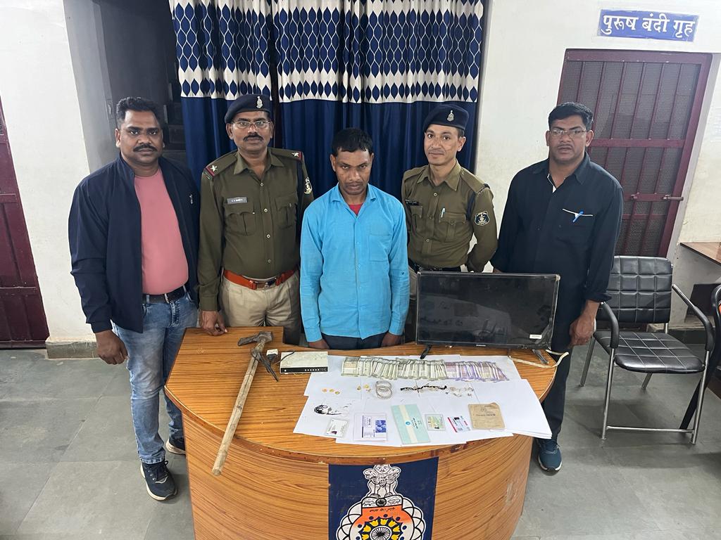 रामचन्द्र धीवर निवासी मोहतराई 15 फरवरी को अपने घर में ताला लगाकर रिश्तेदार के घर में शादी कार्यक्रम में ग्राम पोंड़ी थाना सीपत चला गया था। 25 फरवरी को प्रार्थी का लड़का जो अलग रहता है, वह प्रार्थी को फोन कर बताया कि घर का ताला टूटा पड़ा है। तब प्रार्थी अपने घर वापस आकर देखा तो घर के अंदर रखे टीना के पेटी में रखे सोने- चांदी के जेवर, टीवी, रिसीवर, आधार कार्ड, भूमि संबंधी दस्तावेज, आयुष्मान कार्ड, बैंक पासबुक, व नगदी रकम 26500 रूपये को कोई अज्ञात व्यक्ति चोरी कर ले गया है। पुलिस अपराध दर्ज कर इसकी जांच शुरू की और संदेही युवक विश्राम प्रसाद धीवर को पकड़कर पूछताछ की। तो संदेही ने चोरी की बात कबूल ली। चोरी के कुछ पैसे को उसने खर्च करने की बात बताई। पुलिस ने उसके पास से चोरी के शेष सामान जैसे जेवर, इलेक्ट्रीनिक सामान व नगदी रकम को जब्त कर लिया है।1